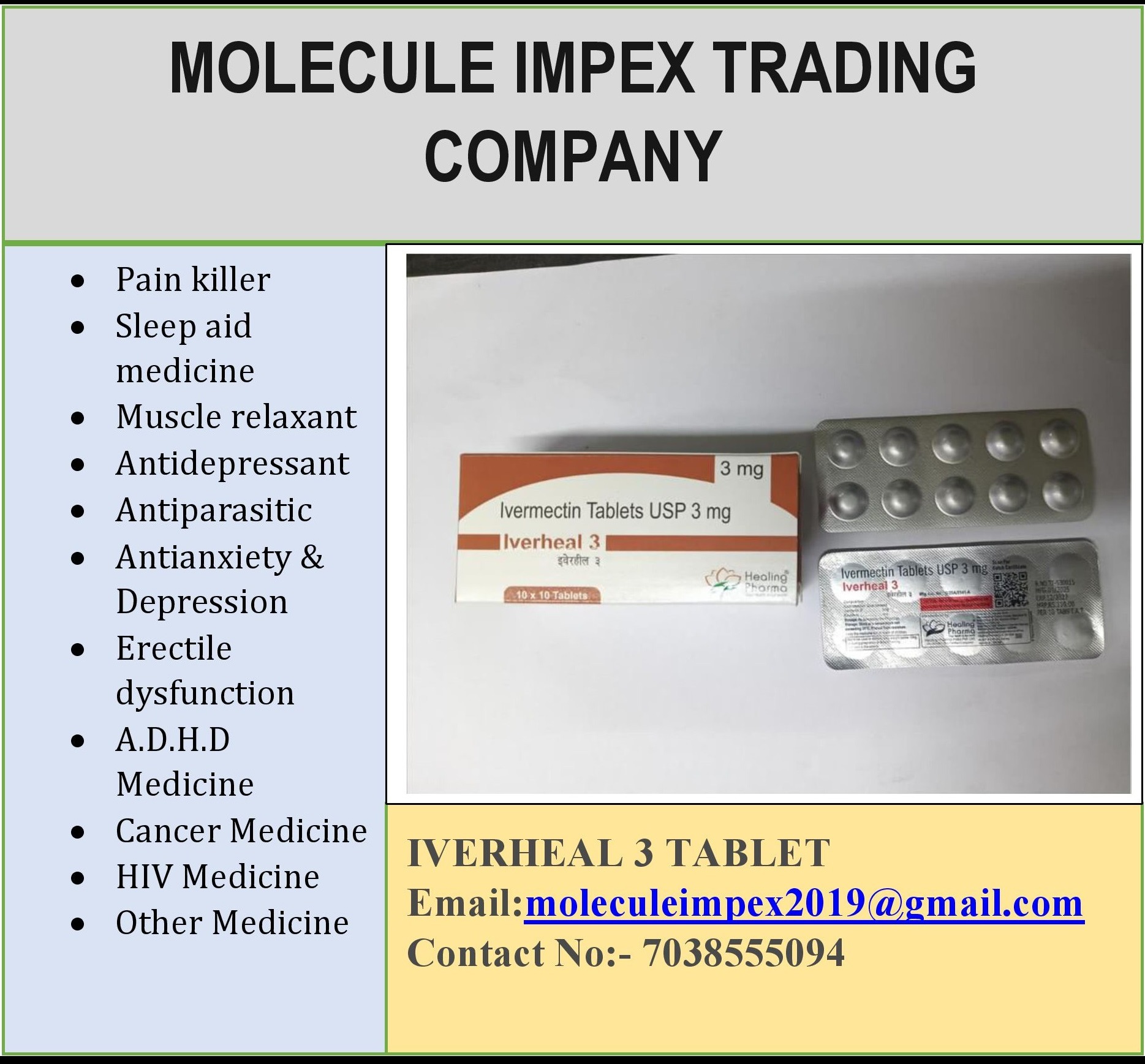 We Molecule impex Is the Leading Supplier, Dealer, Exporter for Iverheal 3 Tablets in London England, Washington USA, Canberra Australia, wellington New Zealand.