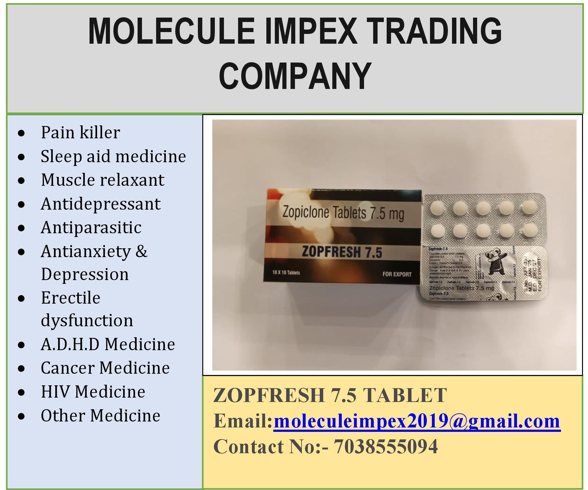 We Molecule impex Is the Leading Supplier, Dealer, Exporter for Zopfresh 7.5 Tablets in London England, Washington USA, Canberra Australia, wellington New Zealand.