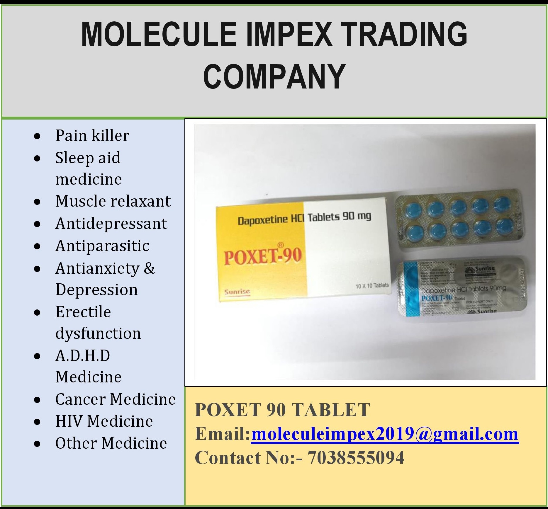 We Molecule impex Is the Leading Supplier, Dealer, Exporter for Poxet 90 Tablets in London England, Washington USA, Canberra Australia, wellington New Zealand.
